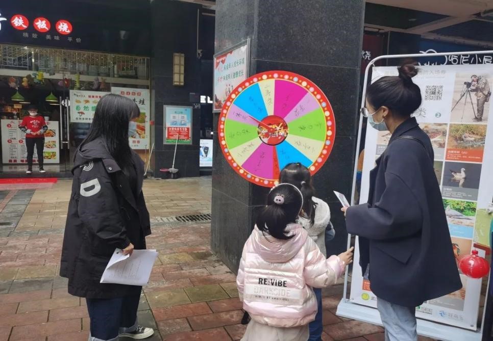 在填写过调查问卷之后,绿协成员邀请社区居民参与套圈和垃圾分类等小游戏,赠送精美奖品。渐渐的居民被绿协成员的热情和新颖有趣的活动所吸引纷纷走上前来,主动向我们了解环保知识、参加湿地保护小游戏和垃圾分类小游戏。社区的小朋友们对协会的环保小游戏产生了浓厚的兴趣,在这个电子产品垄断孩子们娱乐时间的年代,孩子们通过环保游戏,既摆脱了电子产品,又从小就培养了环保知识。