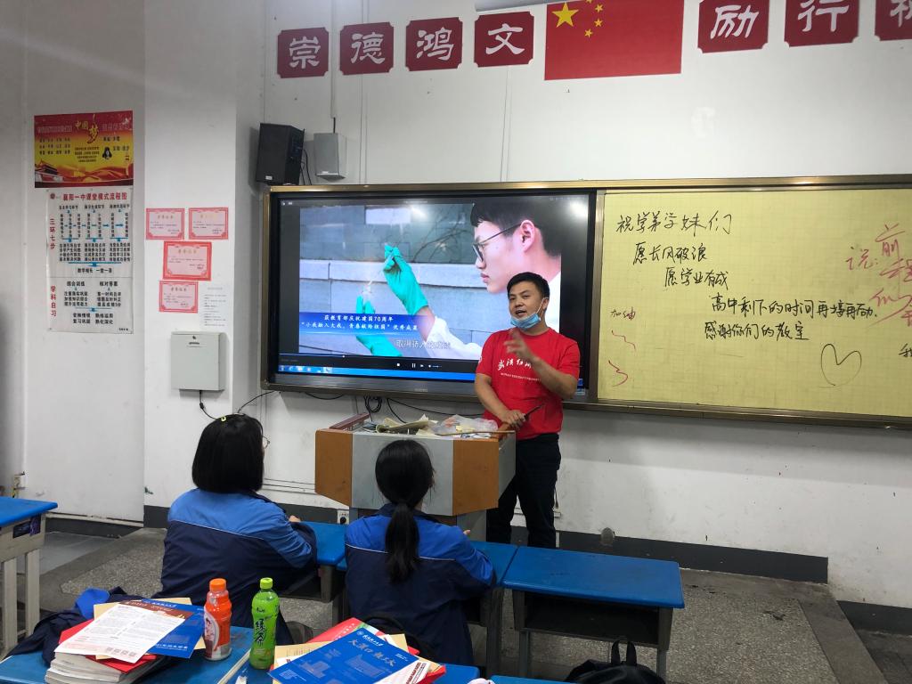2021年6月25日,学院招生团队赴襄阳一中开展招生宣传工作,李进平副经理在高二(3)班教室开展了科普讲座,他以《餐厨垃圾沼渣资源循环利用技术》为题,引导同学们践行“以废治废”绿色低碳发展理念。