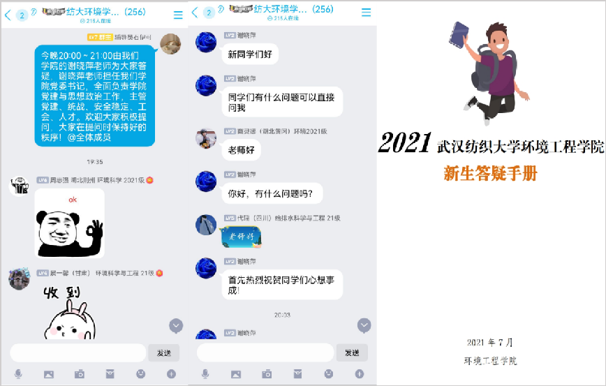 8月6日起,为期20天的线上答疑陆续展开,“老师,给排水科学与工程专业考研的话可以考哪个方向?”“老师,想入党需要具备什么条件?”“学长,学校宿舍是什么样子的呀?”……新生们在群里积极提问,得到了答疑老师和学长的积极回应,就新生关心的报到流程、专业知识、老员工涯规划等答疑解惑。