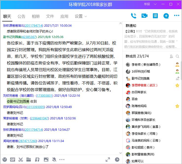 当看到学院的告知时,员工家长们纷纷表示感谢。2018级员工闻鸣的父亲表示:“谢谢,那我们就放心了”,在这场疫情大考前,更拉近了家校间的距离,共同书写好疫情防控答卷。