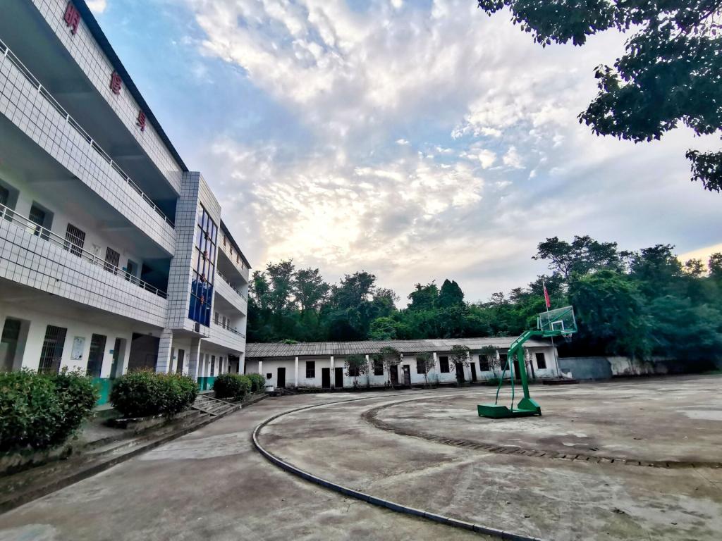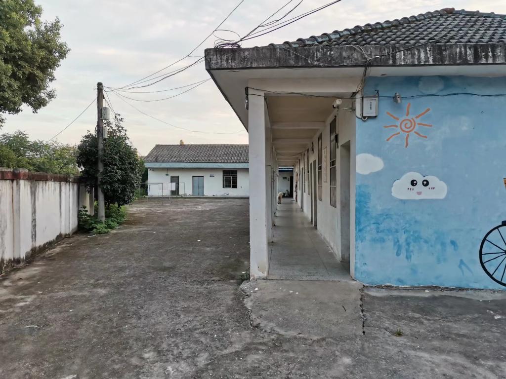 整个王要小学由院墙围了起来,由于年久失修,墙壁早已斑驳陆离。进入校园,一栋三层的教学楼映入眼帘,“文明修身,奋发成才”八个大字十分醒目。楼前的水泥篮球场比较老旧,几乎占满了整个操场,多余的场地只能容下一根旗杆和三张乒乓球台。教学楼前低矮的小平房,像是上世纪八十年代的风格,屋顶盖着石棉瓦、墙角长满了青苔,早已废弃不用。而我们驻扎的大本营就在教学楼的后面,同样也是一排低矮的平房,平时用作员工食堂和宿舍。