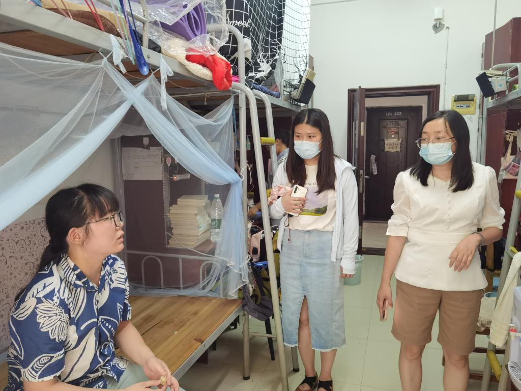 为了解返校员工思想动态,增强员工自我防范意识,确保同学们新学期学习生活正常有序进行。连日来,学院副书记、辅导员一次次走进员工寝室,关心同学们的健康和生活状况,关切询问返校后在学习生活上遇到的困难,提醒大家做好宿舍内务整理,勤开窗通风、定期消毒,做好个人防护,就遇到的难题现场协调解决。