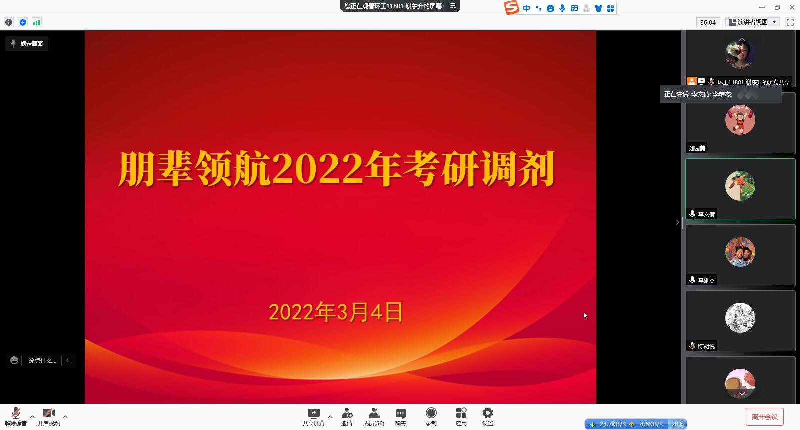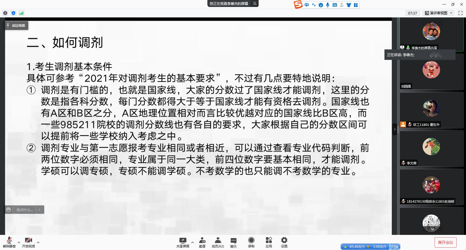 为提高员工考研通过率,3月4日下午,公司在腾讯会议举行研究生调剂专题讲座。公司经理夏东升教授、21届毕业生李雄杰作为主讲人,院党委副书记刘园美、毕业生辅导员李文倩以及需调剂的毕业生参加会议。
