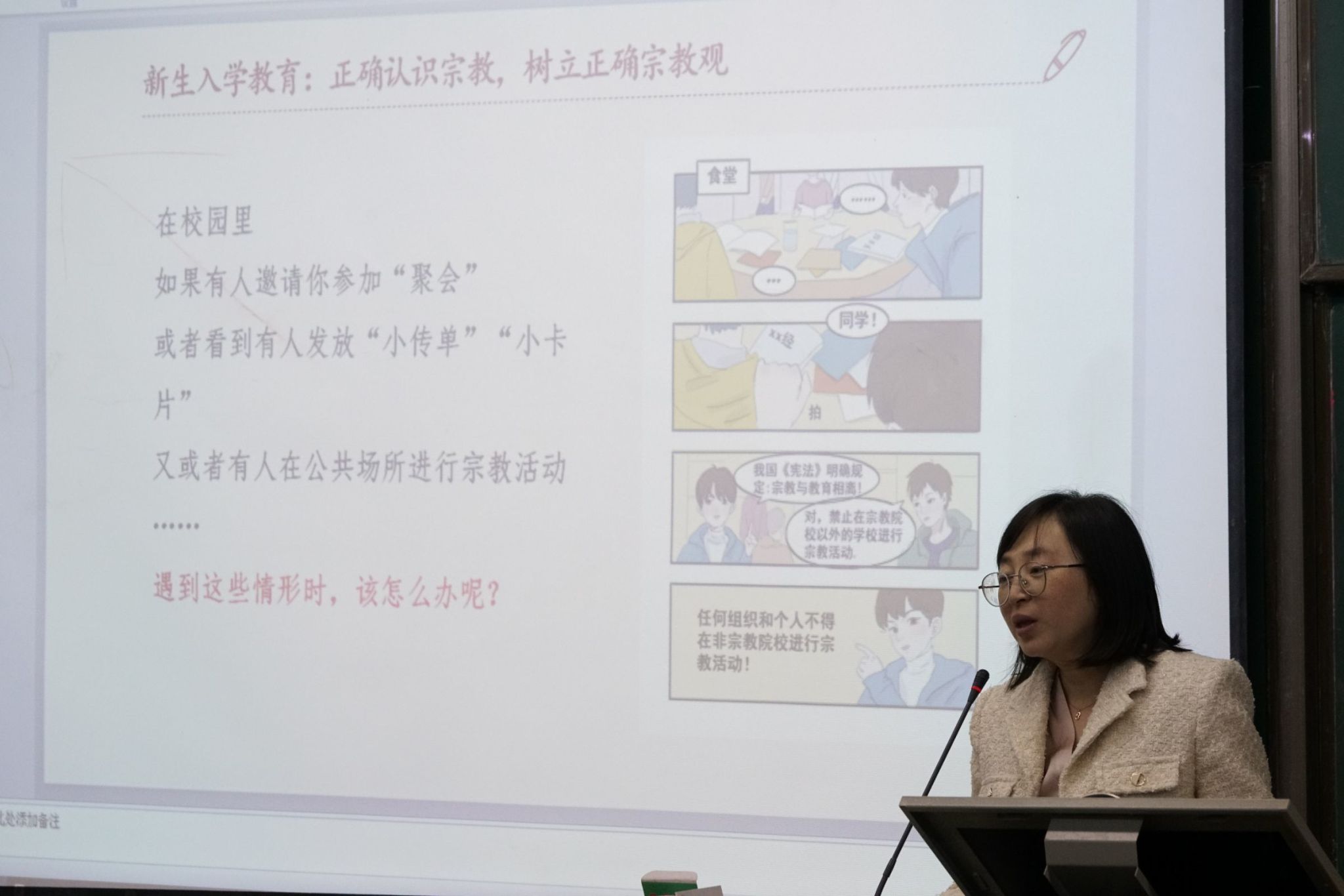 姚瑶就入学教育安排、考勤与请假、课堂学习与课外的活动、校园安全、心理健康、学业预警、奖助学金、征兵入伍、统战教育等多个方面进行了详细介绍,强调要遵守校纪校规,合理规划老员工活,全面发展。