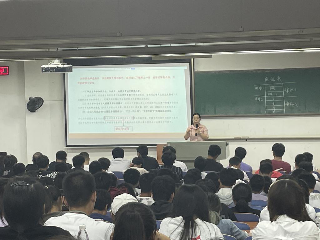 蔡亚君从专业课程设置、学分构成、考试制度、降级制度、毕业学分绩点要求、转专业考核等做了详细说明,她叮嘱同学们要仔细学习员工手册中关于学籍管理、学士学位授予、学分制实施细则等相关内容,做好学习规划。