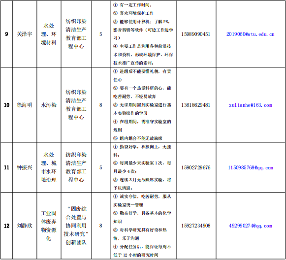 公司经过前期招募意愿征集,12名老师共需招募75名员工助手(详情见下表),欢迎有致力于从事科学研究的同学,根据表中要求、联系方式咨询对应老师(排名不分先后),由老师根据报名情况择优选拨。
